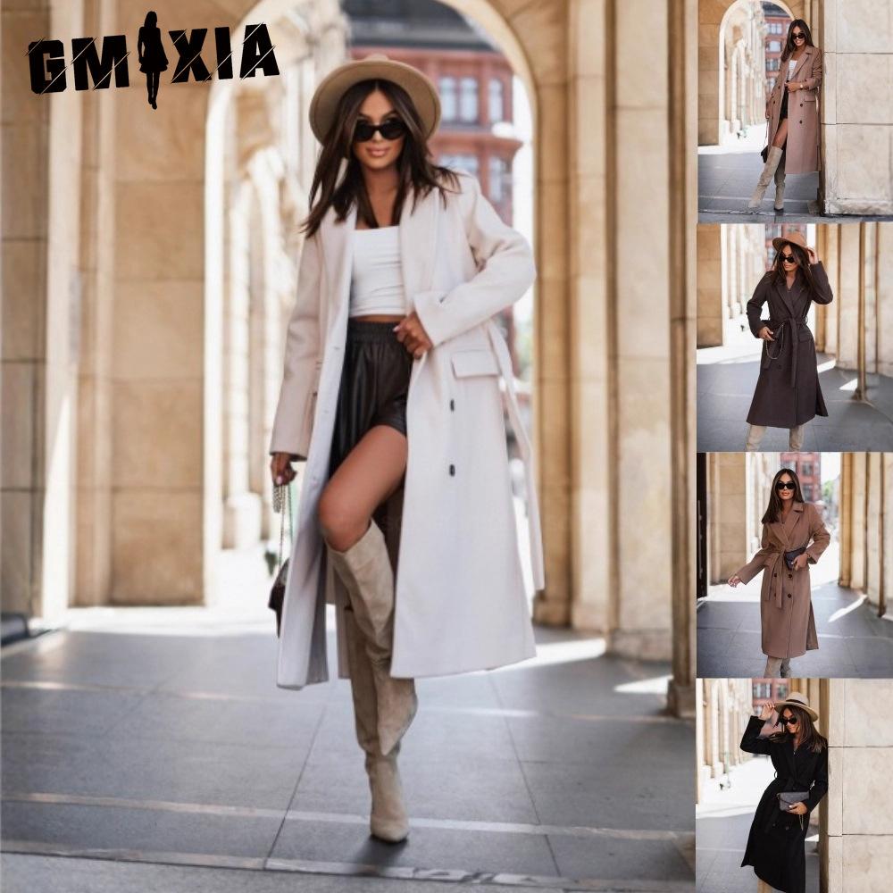 GMXIA Dámské Vintage ležérní jednobarevný potisk Podzim Zima Dlouhý rukáv POLO bundy a kabáty