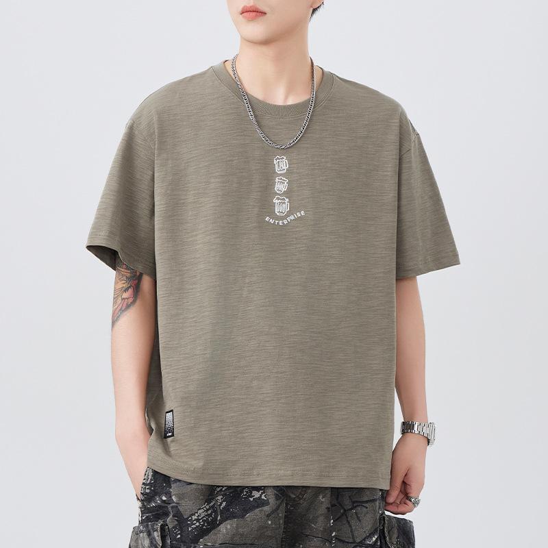 Nejnovější letní těžké tričko s krátkým rukávem pro muže, volný střih, kulatý výstřih, tričko s pětičtvrtečním rukávem, univerzální pro každodenní nošení