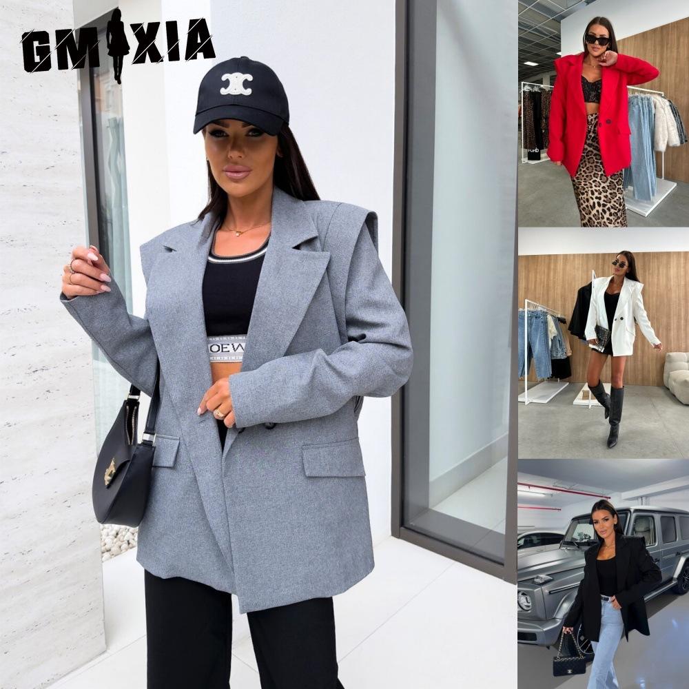 GMXIA Dámské Vintage ležérní jednobarevný potisk Podzim Zima Dlouhý rukáv POLO bundy a kabáty