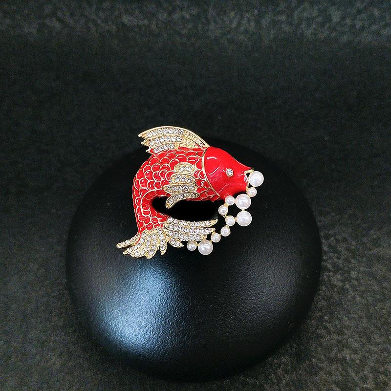 Brož se zlatými rybkami Koi - Vyzařuje sofistikovanost, symbolizuje štěstí a prosperitu rok co rok.