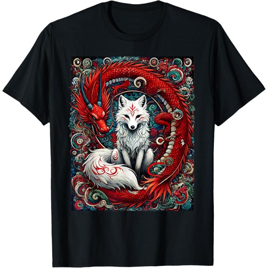 Japanese Mystical Nine-tailed Fox Kitsune Dragon Foxes T-Shirt