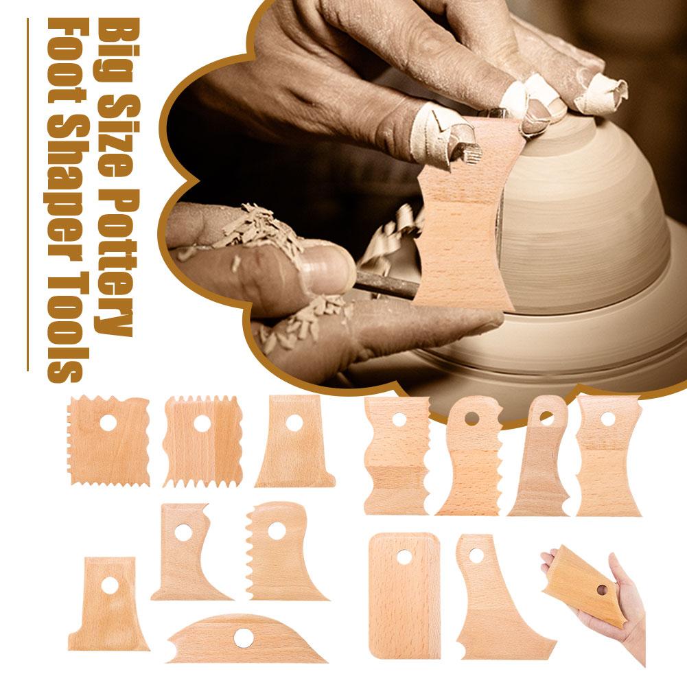 7 PCS Pottery Trimming Tools Pottery Clay Foot Shaper Tools Wooden Texture Profile Rib Bundle Foot Shaper