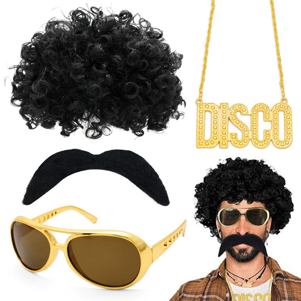 60Th Generation Hippie Fake Sunglasses Beard Necklace Set Cosplay Party Dress Up Props
