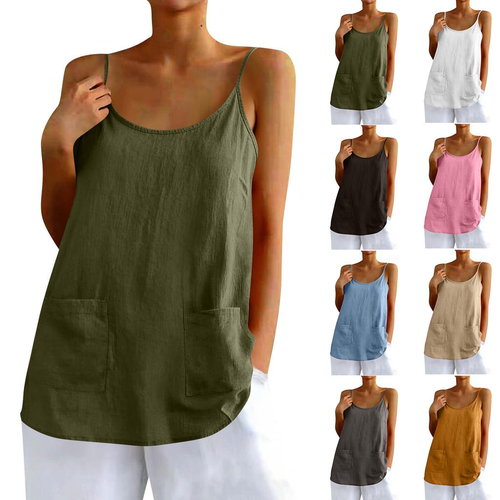 Dámské barevné bavlněné a lněné tílko Volné bez rukávů Univerzální základní top