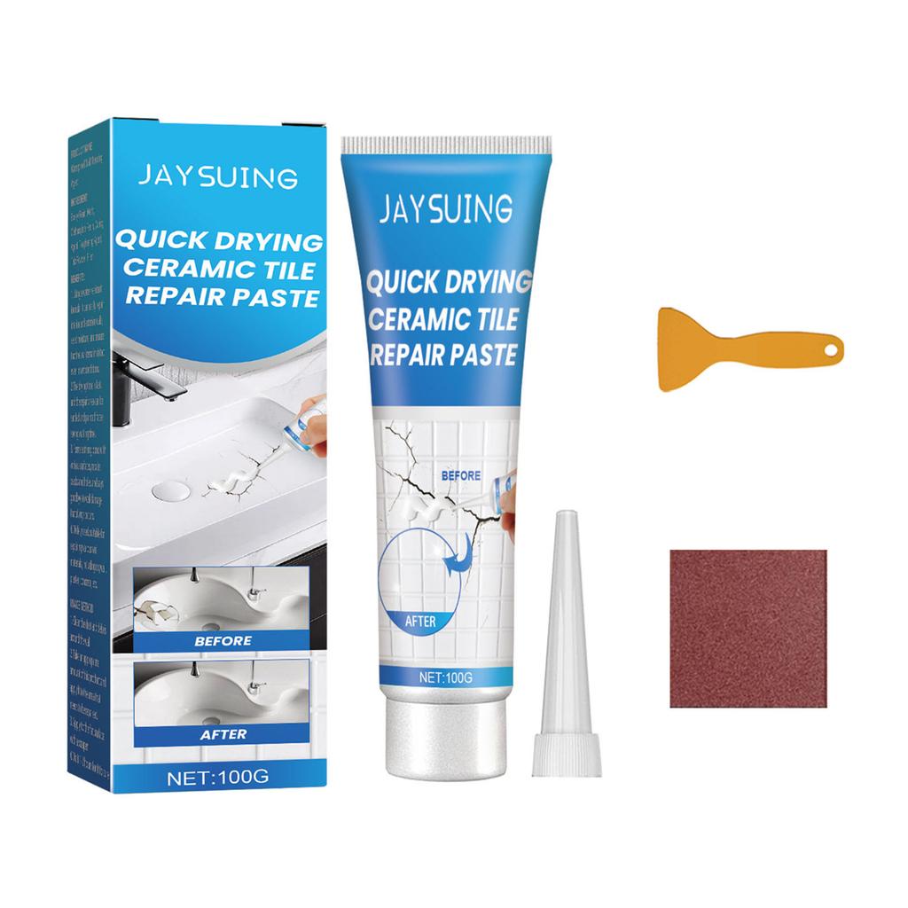 100g Tile Repair Glue Fast Drying Waterproof Patch Paste for Bathroom Kitchen Floor Wall Cracks Holes Includes Scraper Sandpaper