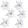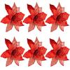 Christmas Poinsettia Ornaments 25 Cm Fauxs Cloth Flowers Set Of 6 Glitter Petals For Tree Wreath Garland Centerpiece