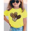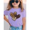 Dětské tričko s potiskem srdíček Leopardí láska Srdce Trendy Roztomilé Letní Top s kulatým výstřihem Módní Grafické tričko s krátkým rukávem Oblečení