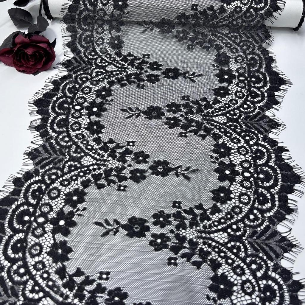 3m x 32cm Black French Chantilly Lace, Non-stretch Eyelash Lace Fabric for Sewing, Bra, Underwear, Lingerie, Dress, Garment, Crafting