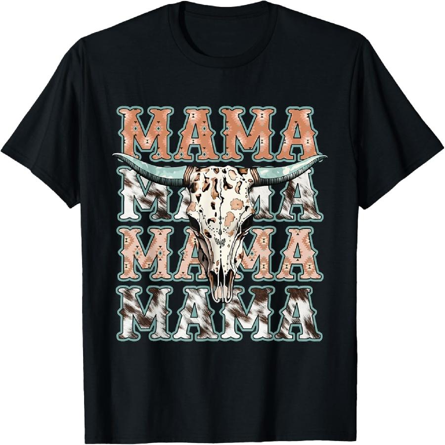 Mama Western Retro Groovy Cow Skull Country Rodeo Mother Day T-Shirt