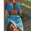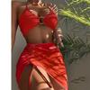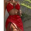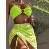 Plavky v evropsko-americkém stylu, dámské, přiléhavé na tělo, jednobarevné, sexy plavky se zapínáním na krk, třídílné bikiny plážové módní plavky