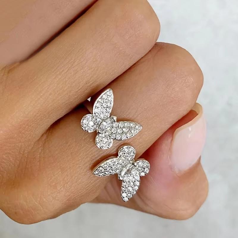 Huitan Sweet Double Butterfly Opening Rings Female Brilliant Delicate Cubic Zircon Accessories Delicate Elegant Wedding