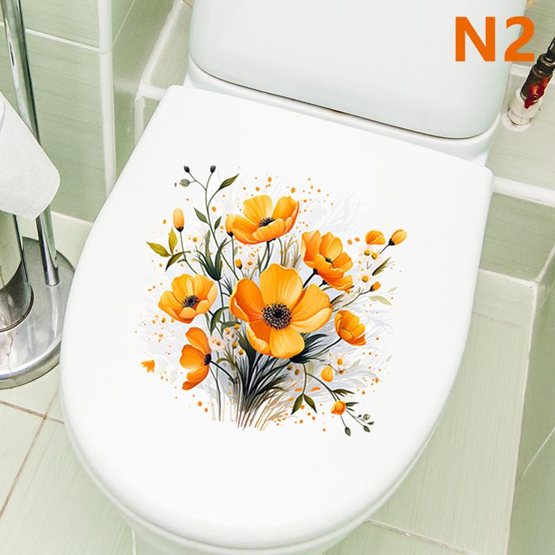 Bathroom Toilet Stickers Elegance Flower Wall Sticker Flower Pattern Self-Adhesive Paintings For Bathroom Living Decoration