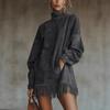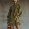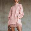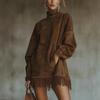 New High Collar Suede Retro Loose Pocket Tassel Long Sleeve Dress