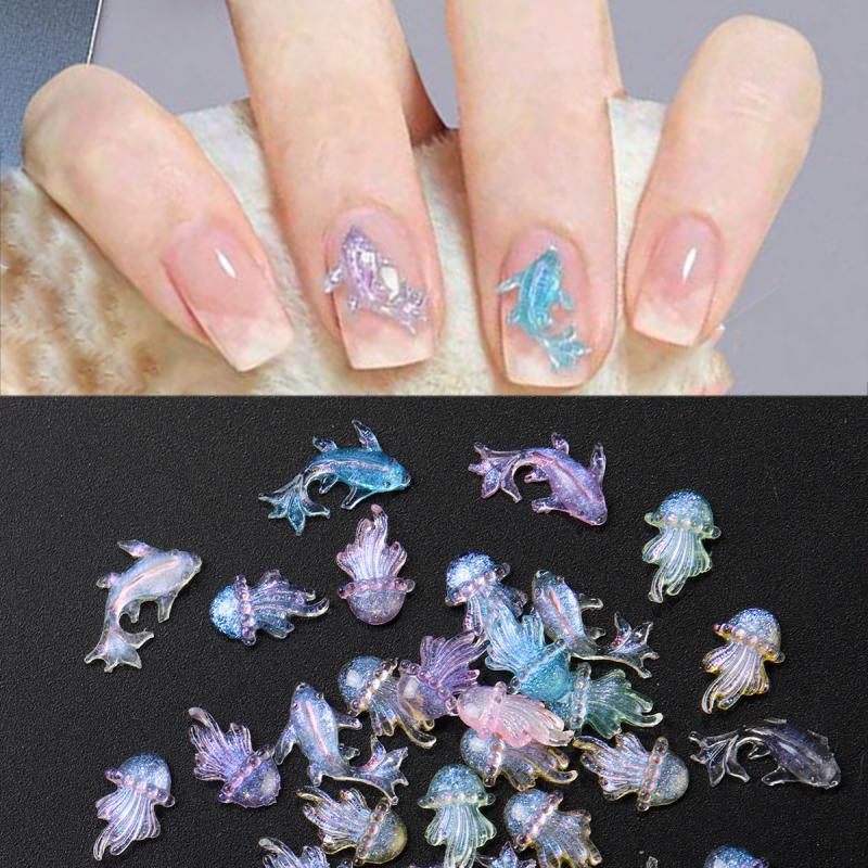 30/50/100ks Delfín Medúza Ozdoby na nehty Žralok Hvězdice Série Mořští živočichové Přívěsky na nehty DIY Nehtové doplňky