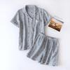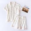 2026 Letní dámská pyžamová souprava s krátkým rukávem a šortkami 100% bavlněná krepová látka Tenká domácí služba Dvoudílná Jaro a podzim Volná
