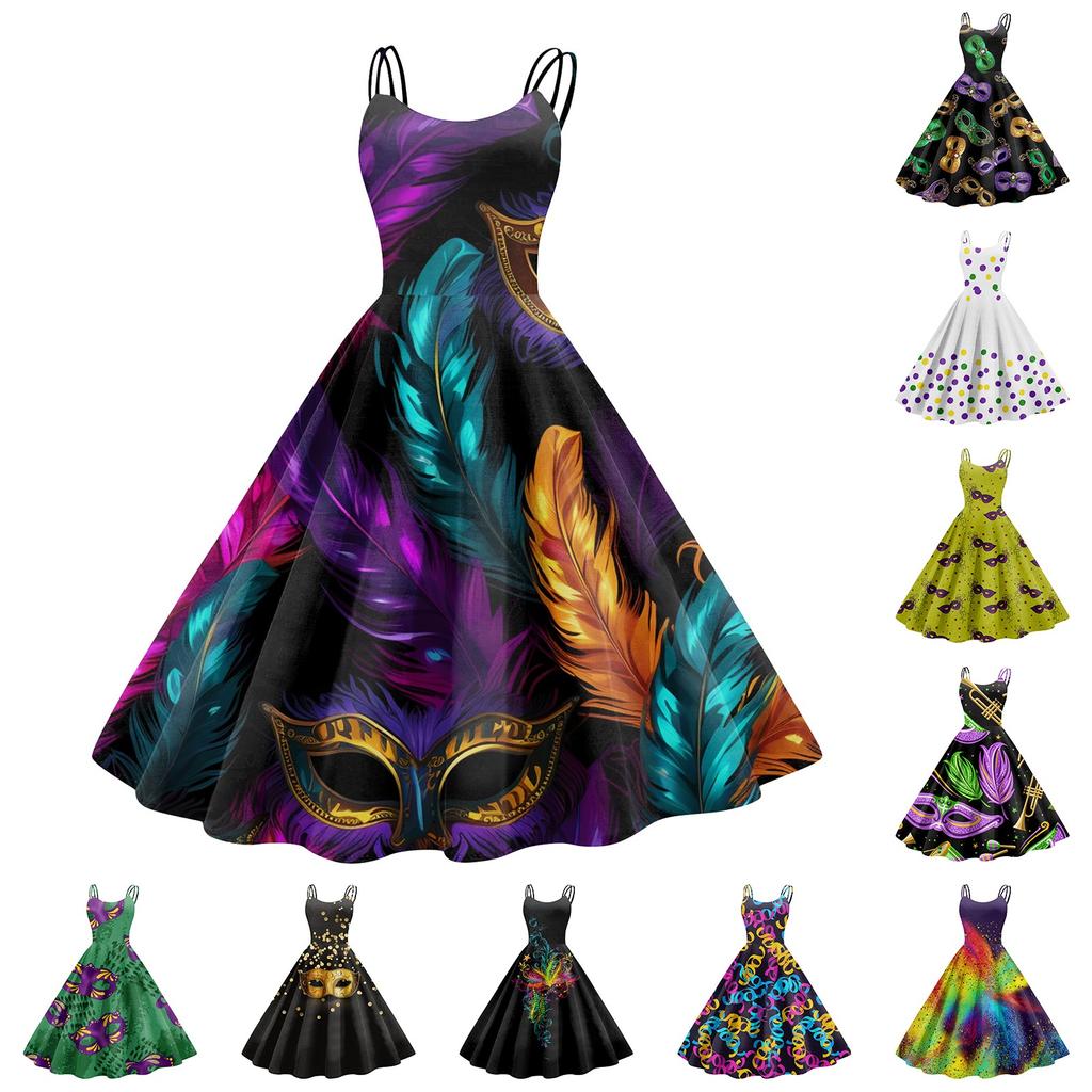 Ladies' Dress, Carnival Print, Sexy Suspender, Big Display, Retro Dress