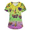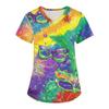 Módní dámské pracovní oděvy s výstřihem do V a krátkým rukávem s kapsami