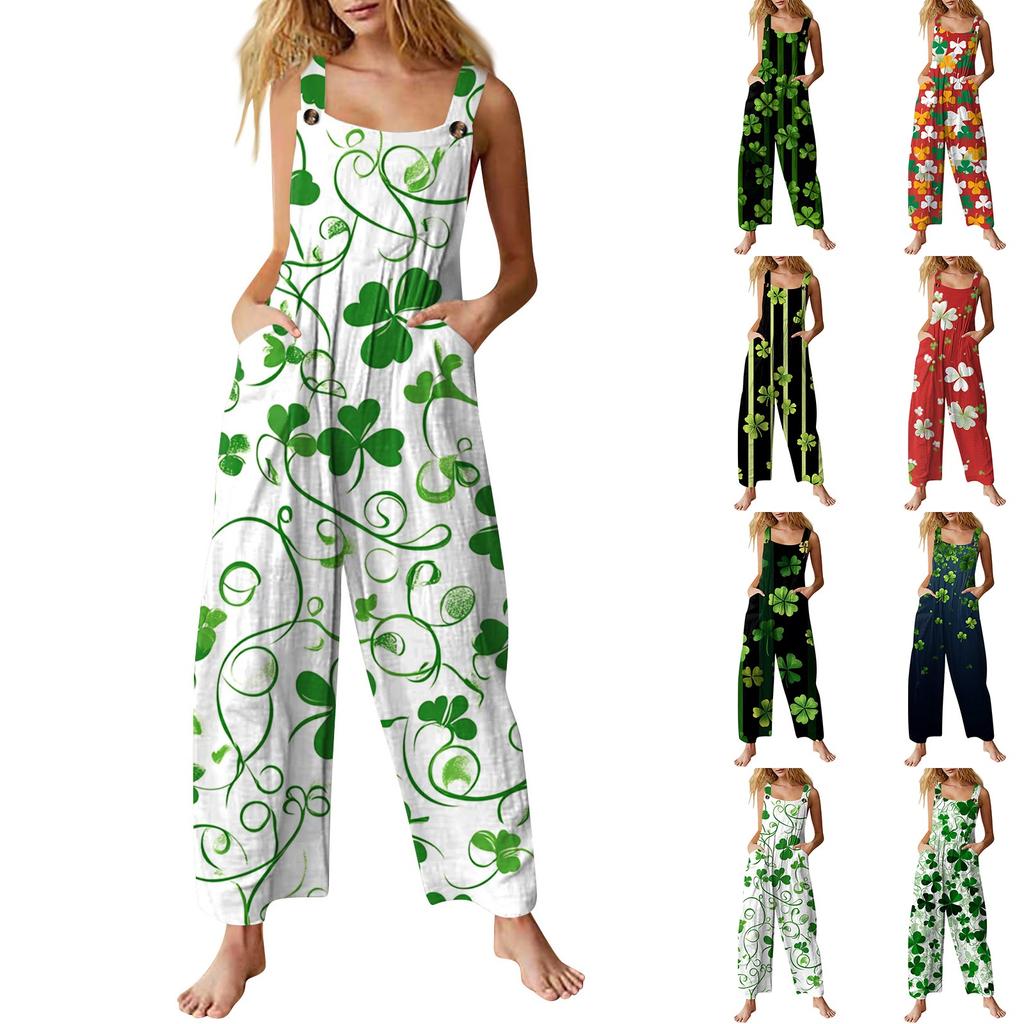 Women's Casual Jumpsuit Sleeveless St. Patrick's Day Printed Cotton Jumpsuit describe: 1. Material: Made of high-quality material, for daily wear and with excellent elasticity, which makes this summer tights suitable for most body types. 2. Features: Special printing/U collar design. Sleeveless loose fit casual printed wide leg pants high waist loose fit comfortable elasticity makes you more fashionable and . Stylish jumpsuit, sleeveless and lace-up for easy and off. 3. Design: This jumpsuit creates a slimming visual effect! The backless spaghetti straps are perfect for summer, and the casual wide-leg pants make this jumpsuit a must-have this year. 4. Suitable Occasion: Suitable for daily wear, street wear, shopping, club, party, date, beach, vacation, travel, leisure, pajamas, home, work, school, hiking, or as a gift for family and friends. It can be worn alone or with a jacket or jacket. 5. Satisfaction Guarantee: We take no risk when purchasing our products. If you have any questions about the product you purchased, we are here to help product information: Gender: Female Occasion: Casual, Material: Polyester leisure Length: Regular Fit: Right size Thickness: standard Washing method: Hand wash in cold water, hang or dry What you will get: 1 women's jumpsuit