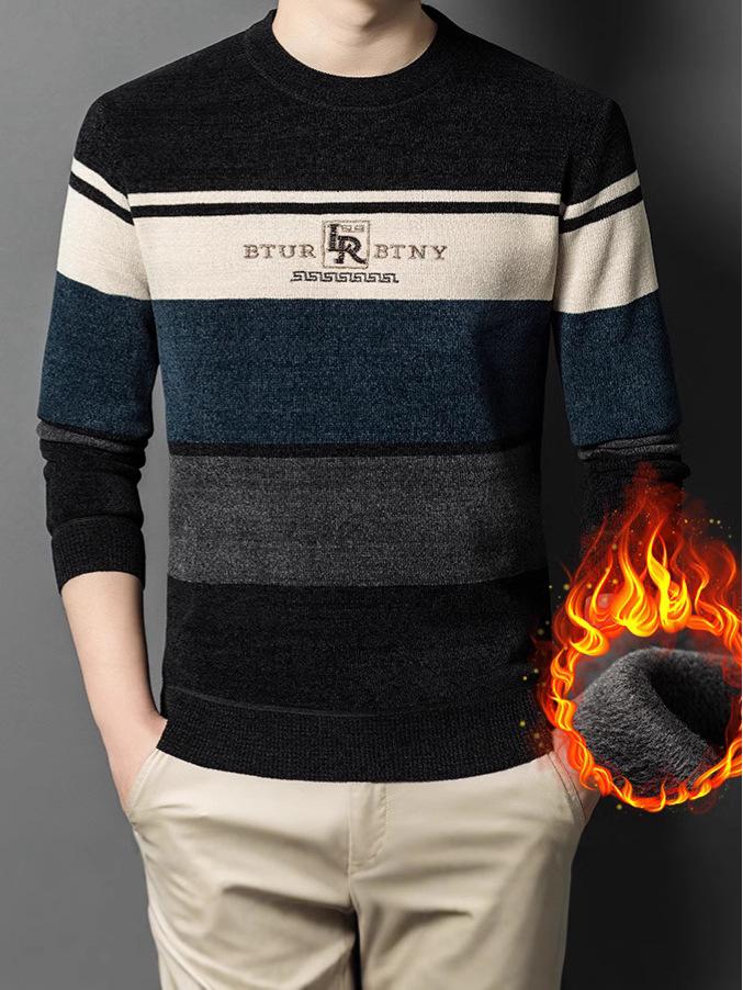 Elevate your winter wardrobe with this luxurious sweater designed specifically for middle-aged men. Crafted from high-quality polyester, it features a thick knit base layer for exceptional warmth. The loose fit ensures comfortable wear, while the long sleeves and round neckline add a classic touch. Lined with velvet for added insulation, this chenille sweater is perfect for combating the chill without compromising on style.