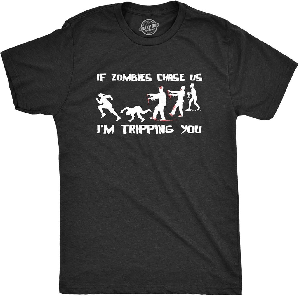 Mens If Zombies Chase Us Im Tripping You Funny Graphic Novelty Halloween T Shirt