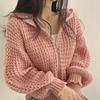 Pletený svetr s kapucí a volným zipem s dlouhým rukávem