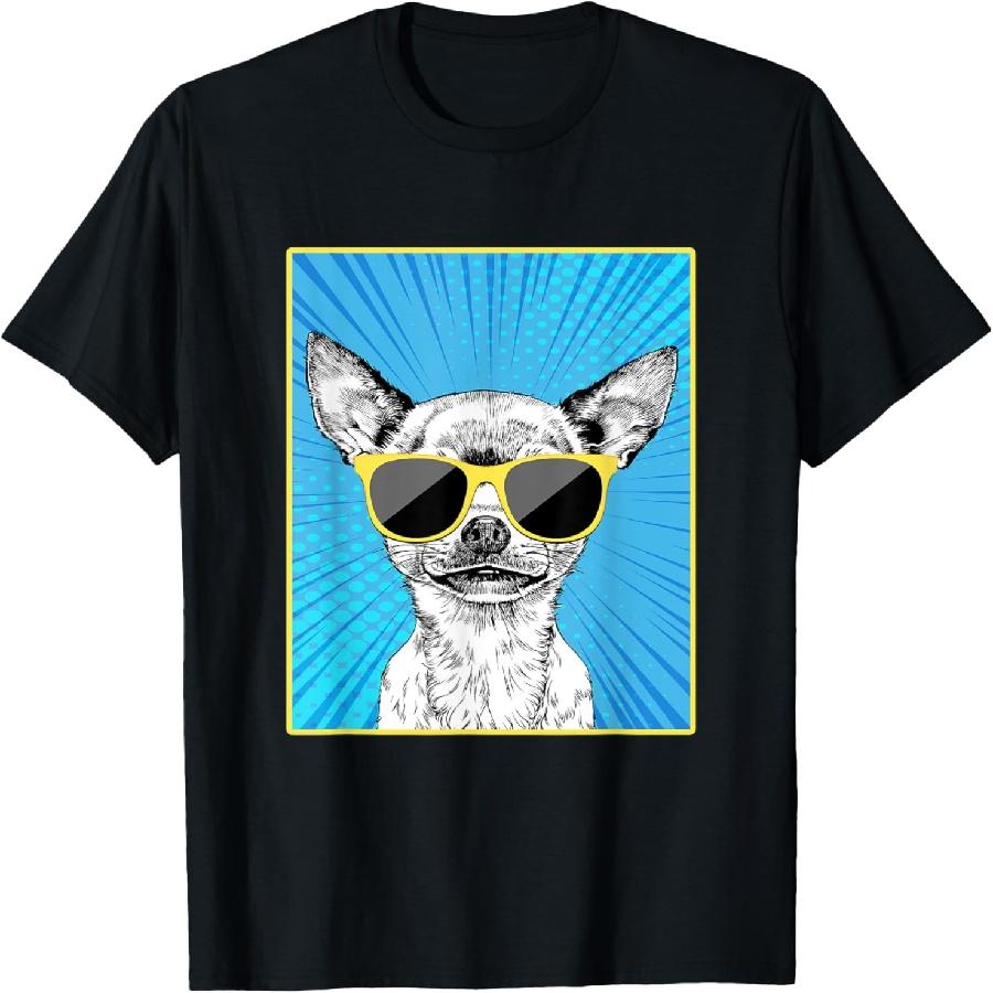 Chihuahua Portrait Pop Art Dog with Sunglasses T-Shirt for Men Women Kids