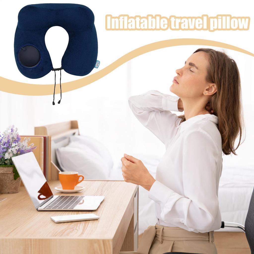 Inflatable Travel Neck Pillow Airplane Travel Blow Up Pillow Ergonomic Head Support Cushion Portable Supplies For Napping Long