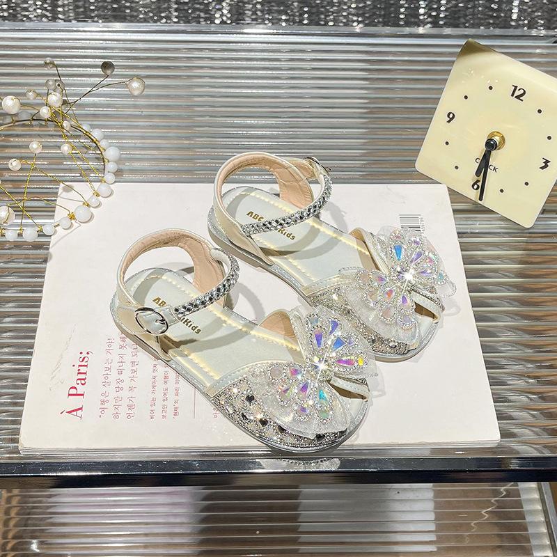 Children's crystal sandals 2026 season children's baby bow sandals Korean version of fish mouth soft sole princess shoes
