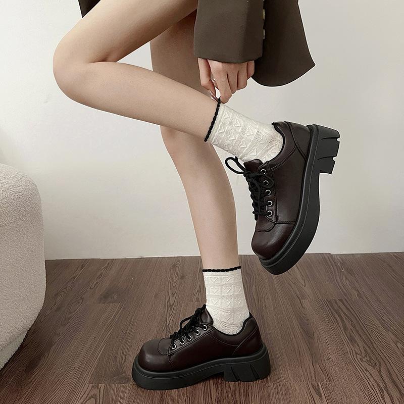 Black with skirt platform British style small leather shoes summer 2025 new lace-up thick heel round head Mary Jane shoes