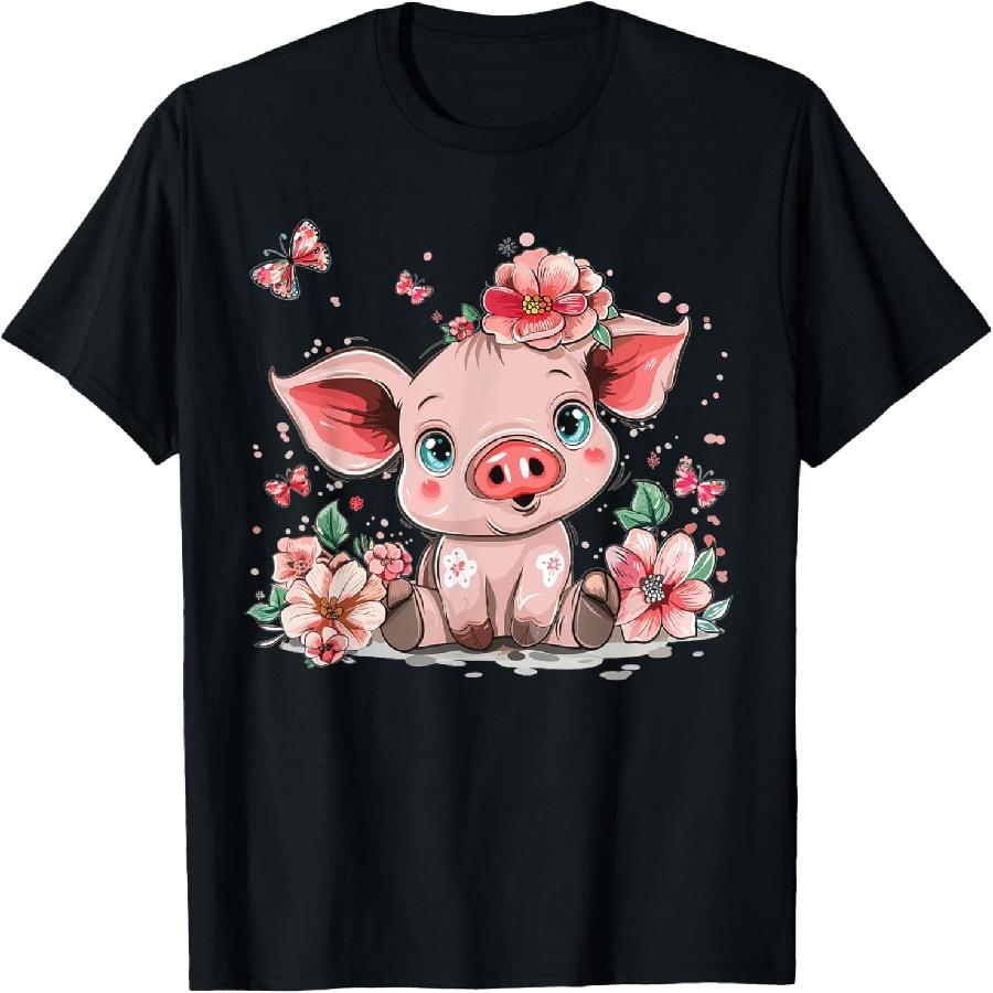 Cute Pig With Flowers I Kids Pig T-Shirt(1)