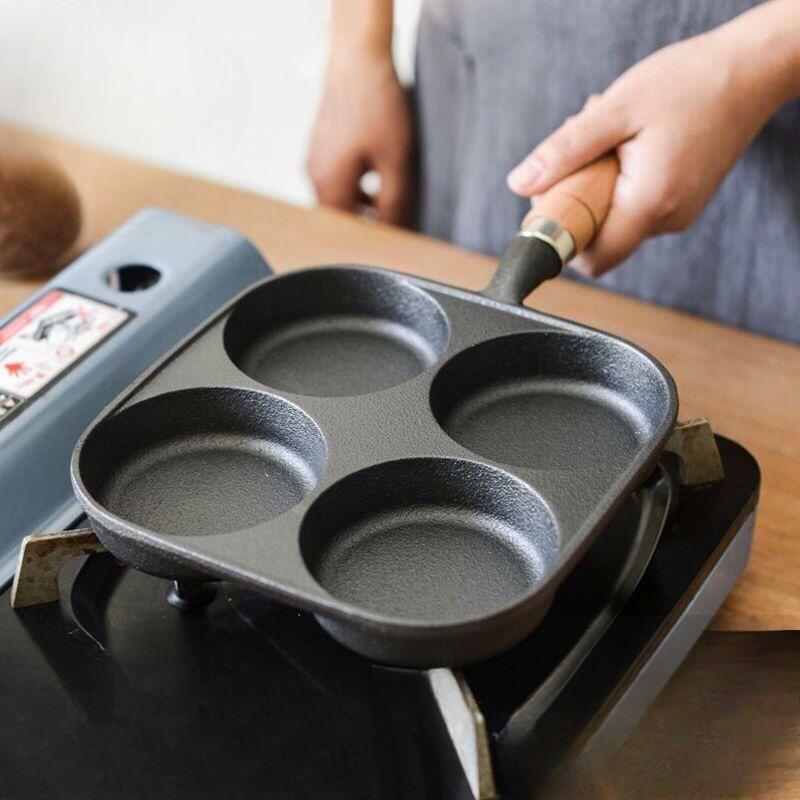 Frying Pan with 4 Holes - Non-stick Cast Iron Four-hole Egg Dumpling Pan - Deepened for Egg Buns - Non-stick Flat-bottom Pan - Egg Frying Gadget