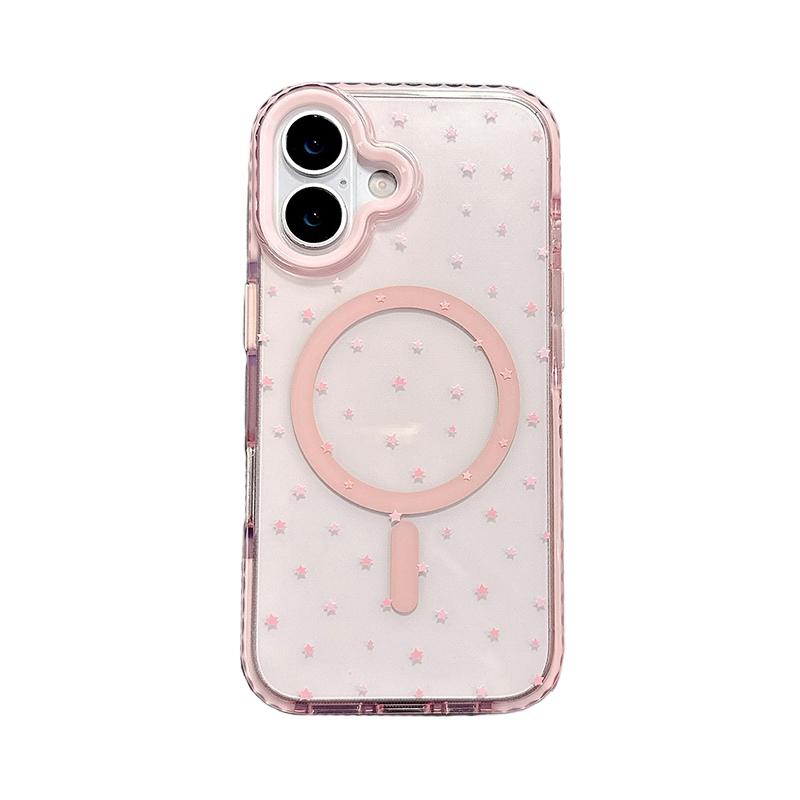 Růžové Hvězdy Magnetický Bezdrátový Nabíjecí Průhledný Měkký TPU Zadní Kryt Pro iPhone 13 14 15 16 17 Pro Max Kompatibilní S Magsafe Pouzdrem