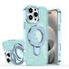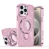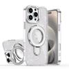 Luxury Glitter Metal Stand Magnetic Wireless Charging Clear Case For iPhone 16 15 14 Plus 13 12 17 Pro Max 17Air Magsafe Cover