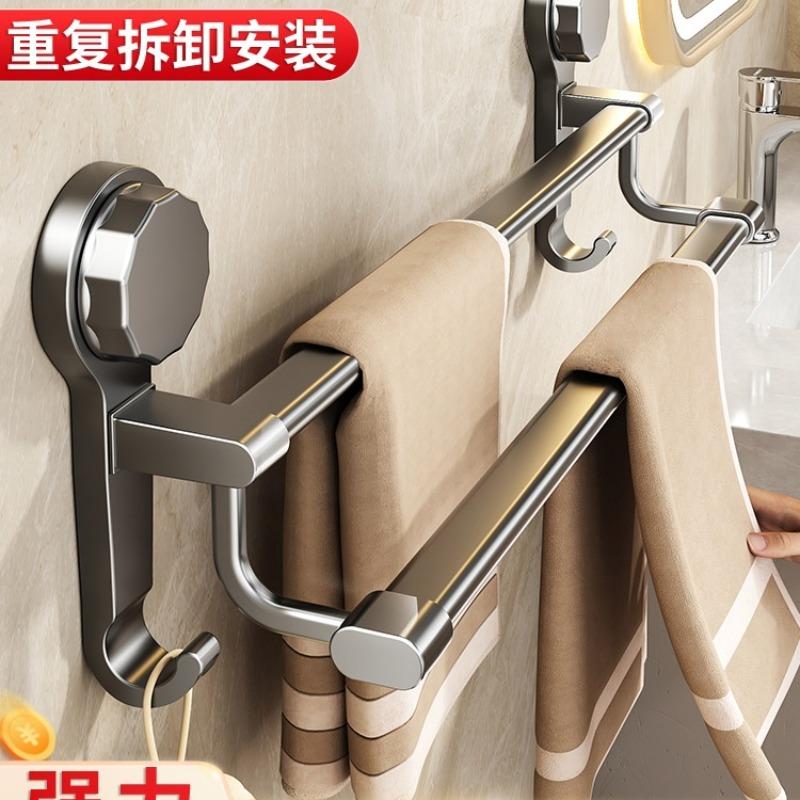 Suction cup towel rack, toilet non-punching bathroom towel double bar rack, toilet wall hanging bath towel storage hanger