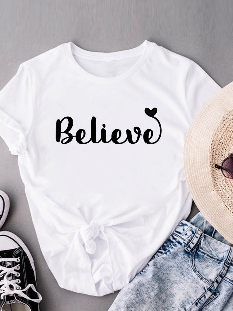 (Asian Size) letter style trend Women's Top Print O-neck Short Sleeve T-shirts Fashion Female Casual T Clothing Graphic Tee
