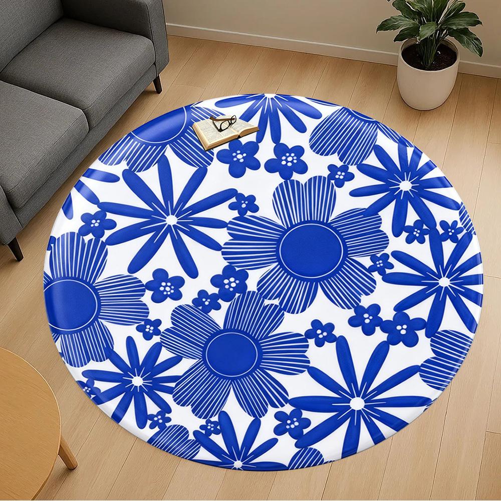 1pc Floral Pattern Blue Round Chair mat office Area Rug - Non-Slip, Floor Mat for Office, Bedroom, Ideal home decor gift p0105063