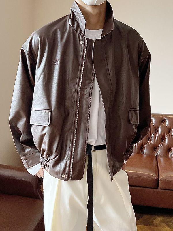 Pánská retro motorkářská bunda s klopami z PU kůže - Ležérní jarní/podzimní styl