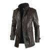 Men's Stand Collar Leather Jacket - Autumn/Winter 2021, Mid-Length, Loose Fit, Plus Velvet, Plus Size, PU Leather.