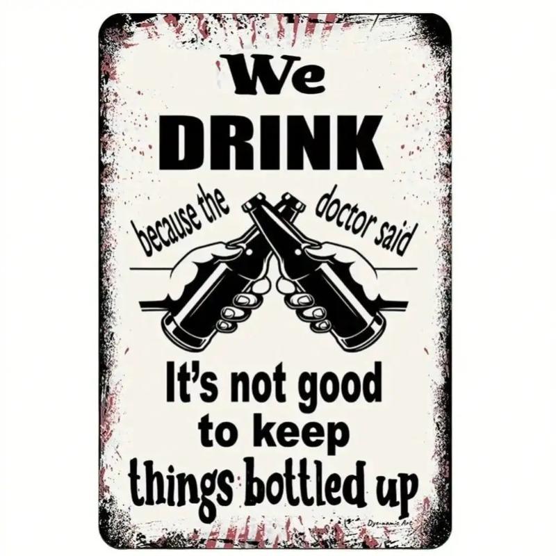 Humorous Drinking Bottled Up Metal Plaque Vintage Bar Decor Man Cave Art