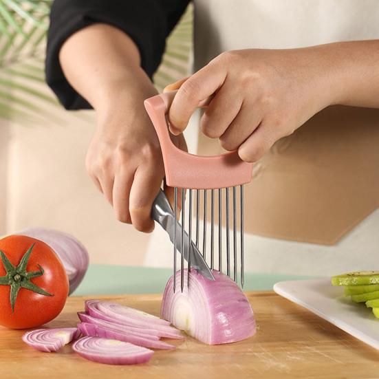 Zvyšte efektivitu své kuchyně s naším nerezovým držákem a kráječem na cibuli, navrženým pro úsporu času a zajištění bezpečnosti.. Díky 10 ostrým nerezovým hrotům bezpečně drží cibuli, avokádo, vejce a další zeleninu na místě, zabraňuje sklouznutí a umožňuje rovnoměrné, přesné krájení.. Jeho ergonomická rukojeť nabízí pohodlný úchop pro řezání bez držení v ruce, čímž snižuje riziko nehod..