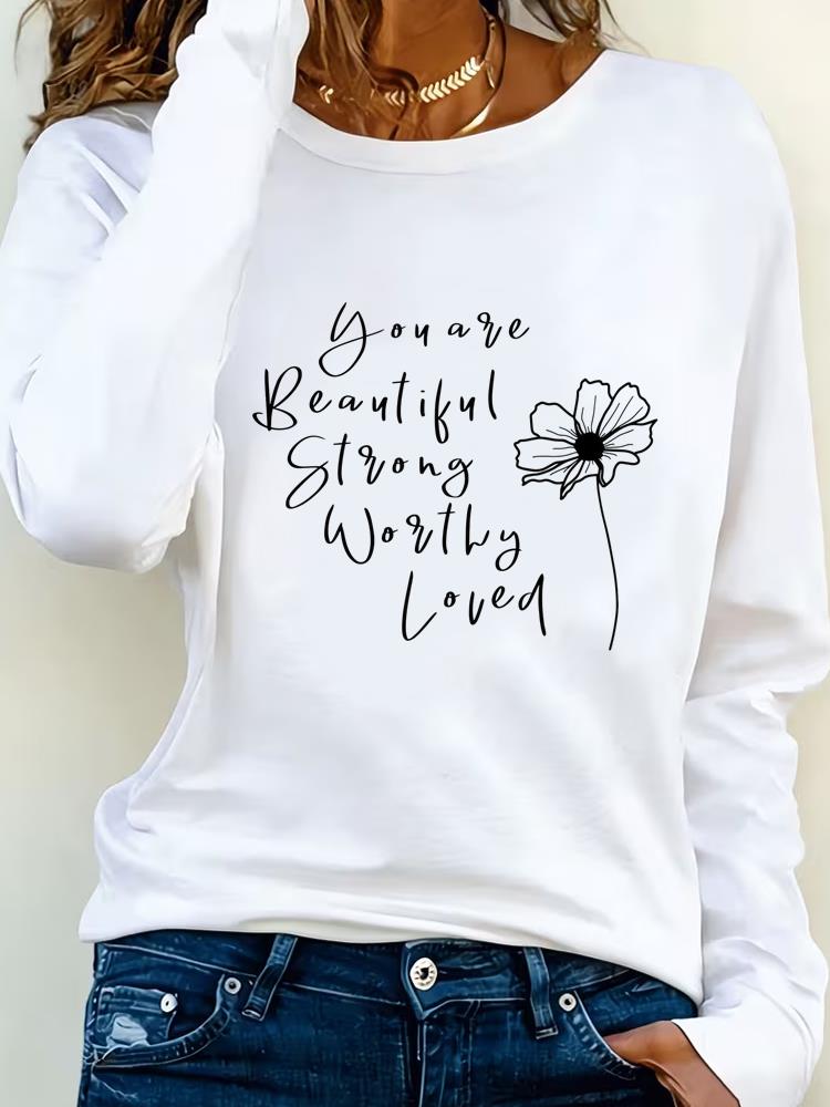 (Asian Size) Print T Shirt Tee Women letter style trend Clothing autumn winter spring Casual Fashion Top o-neck Graphic Long Sleeve T-shirts