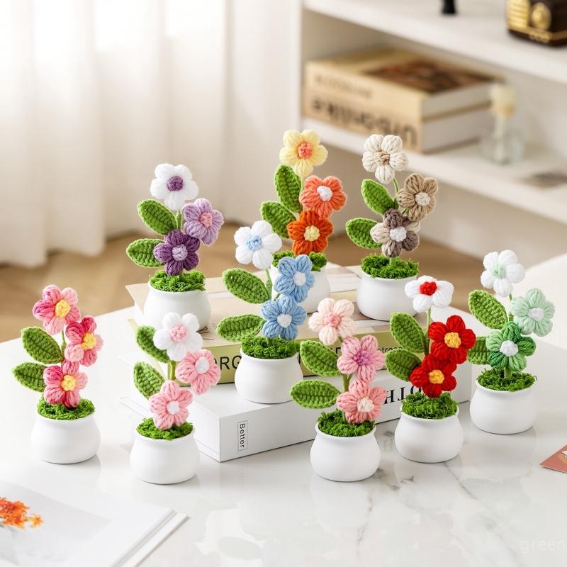 Ruční háčkování Malé rostliny v květináčích Roztomilá simulace květiny Interiér auta Kancelář Dekorace na plochu Umělé květinové dárky