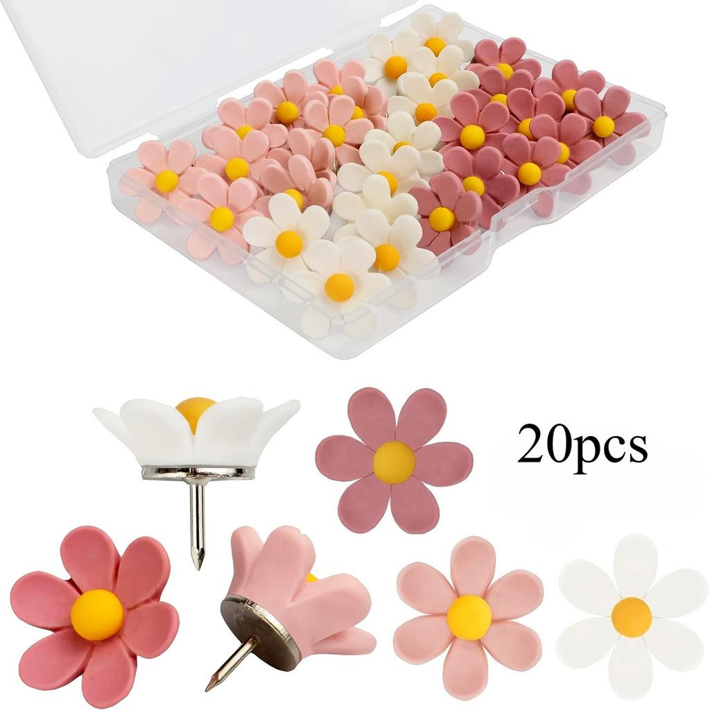 20pcs Pink Floral Pushpins - Decorative Resin Flower Thumbtacks for Photo Walls & Office Supplies