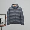 This men's lightweight hooded down jacket is designed with 90% duck down filling, offering warmth without the bulk. Its ultra-thin construction and solid pattern provide a casual yet stylish look, perfect for winter wear. Crafted from durable nylon, the jacket features a loose fit that accommodates a comfortable range of motion, making it ideal for middle-aged and elderly gentlemen weighing up to 200 lbs. With a sleek, minimalist design, this jacket is both functional and fashionable for everyday use.