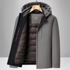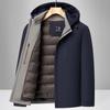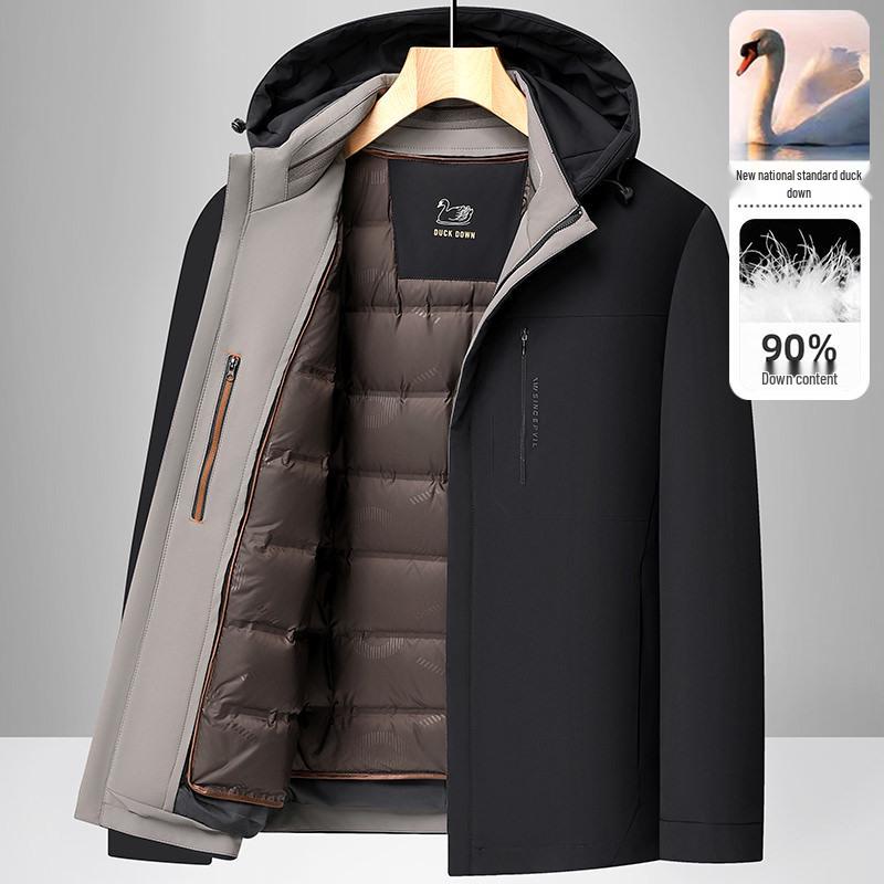 Introducing a versatile mid-length down jacket designed for the modern man. This jacket features a detachable liner, ensuring adaptability for both autumn and winter. Perfectly crafted with a regular fit, it offers optimal comfort while maintaining a sleek silhouette. The jacket includes a stand neckline for added warmth and style. Filled with premium duck down, it provides excellent insulation against the cold. The solid pattern and insulated outerwear thickness ensure a sophisticated look and superior protection. Constructed with polyester material and accented with a chemical fiber blended fur, this jacket balances durability and elegance, ideal for any casual or semi-formal occasion during the colder months.
