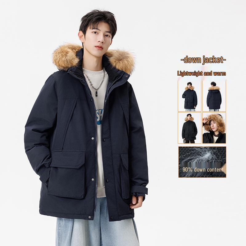 This unisex mid-length winter down jacket is designed for those who prioritize warmth and style. With 90% white duck down filling, it offers superb insulation without compromising comfort. The jacket features a loose fit and a stand neckline, adding a contemporary touch to your winter wardrobe. The solid pattern enhances its versatile appeal, while the chemical fiber blended fur collar offers added protection against the cold. Constructed from durable nylon material, this piece is perfect for enduring the harsh winter months. Designed with men in mind, it combines functionality and fashion effortlessly.