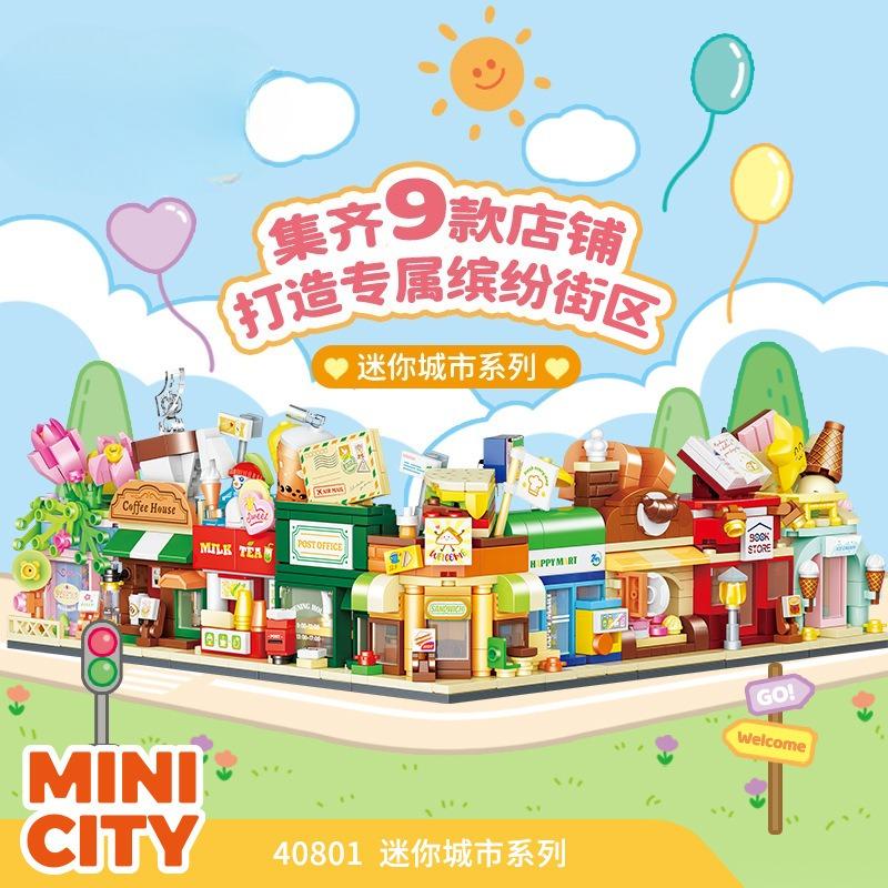 Mini City Food Street Scene Building Blocks Educational Toy Gift for Kids Creative Assembly Model