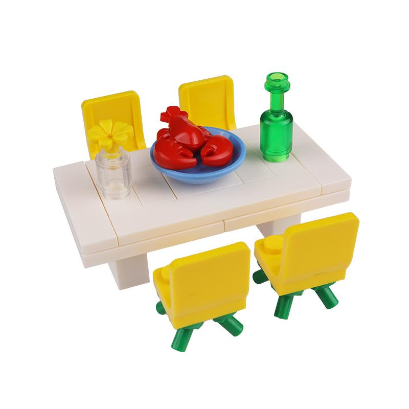 MOC small particle DIY creative building blocks kitchen furniture home appliances collection dining table model kitchen cabinet
