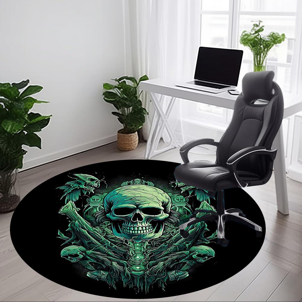 1pc Gothic Skull Carpet for Office Non-Slip, Round Carpet, Soft & Comfortable, Carpet for Office, Lightweight Round Floor Mat