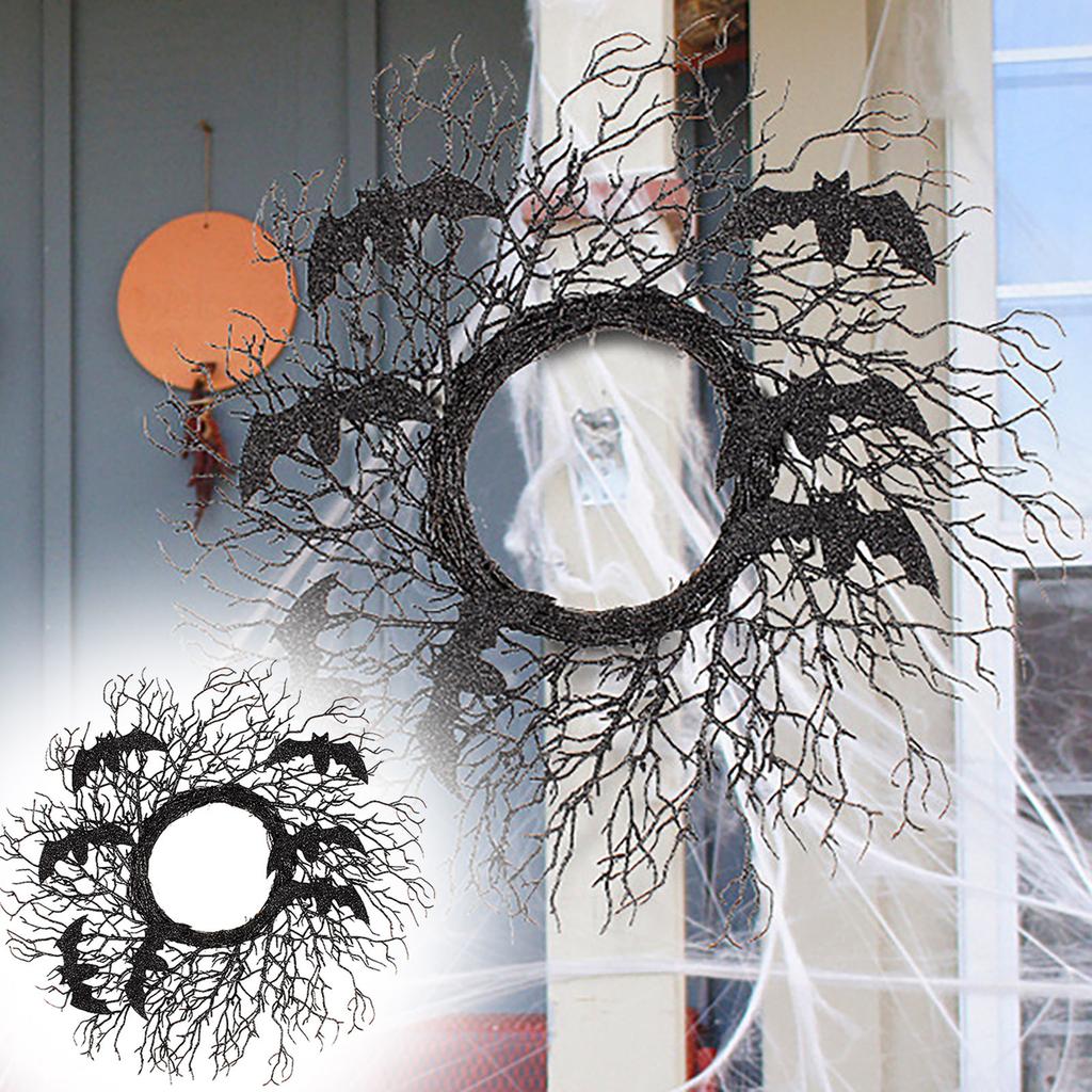 Halloween Simulation Decoration Wreath, Black Withered Branches, Vines, Window And Door, Hanging Party Props